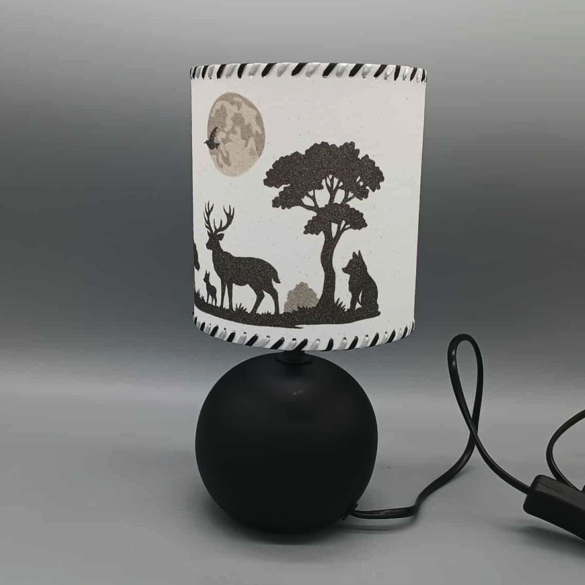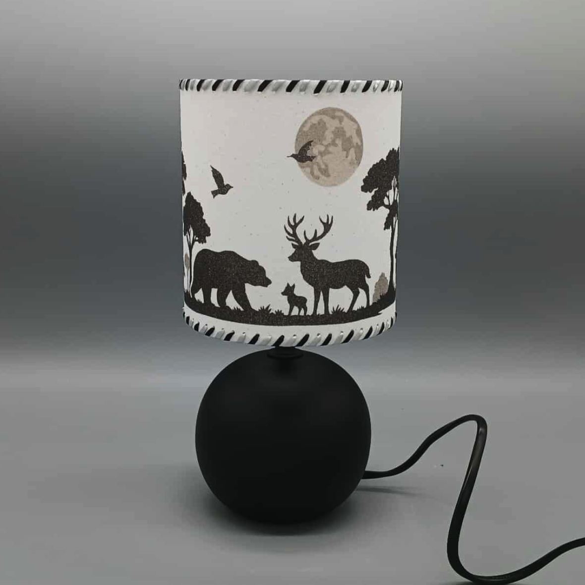 Plongez en pleine nature avec cette lampe “La forêt” mettant en scène loups, cerfs, renards et ours en sables gris et noir. Le pied noir mat accentue l’élégance sauvage de ce luminaire artisanal.